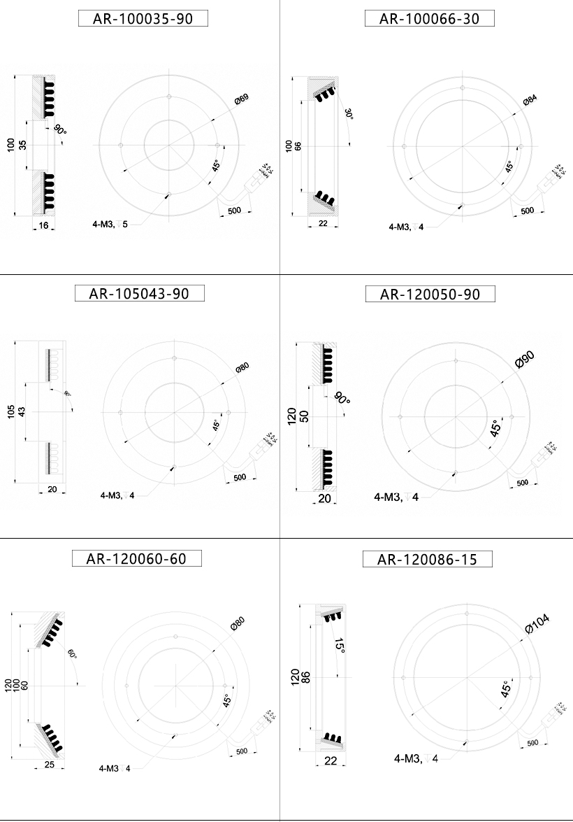6、角度可選0°~90°,可定制任意外徑。